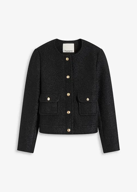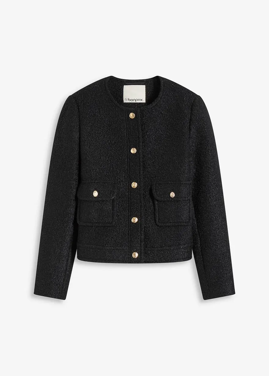Kurzer Blouson aus strukturiertem Bouclé mit aufgesetzten Taschen