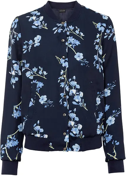 Mit diesem kurzen Blouson von BODYFLIRT betonen Frauen ihren femininen Look. Die langärmlige Jacke ist gerade geschnitten und schließt auf der Vorderseite mit einer durchgehenden Knopfleiste aus Druckknöpfen. Der kleine Kragen mit V-Ausschnitt, die Ärmel und der Saum sind mit weicher Rippware abgesetzt.Am besten passt dieser modische Blouson zu kurzen Röcken oder langen Hosen.