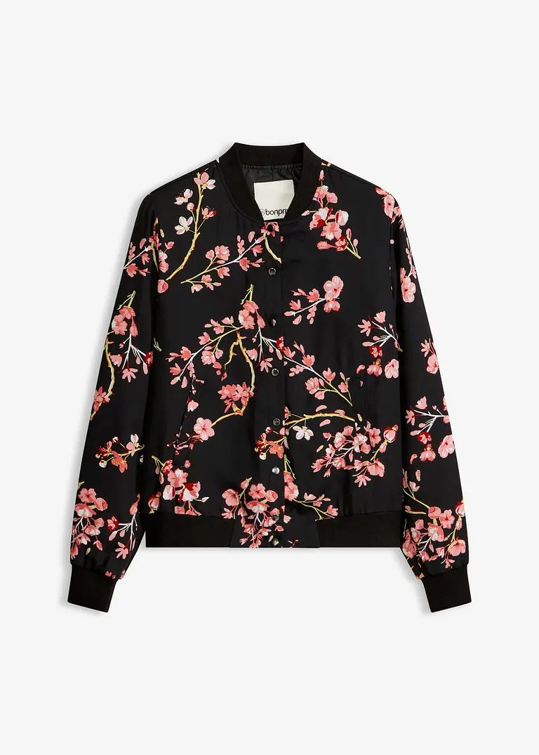 Mit diesem kurzen Blouson von BODYFLIRT betonen Frauen ihren femininen Look. Die langärmlige Jacke ist gerade geschnitten und schließt auf der Vorderseite mit einer durchgehenden Knopfleiste aus Druckknöpfen. Der kleine Kragen mit V-Ausschnitt, die Ärmel und der Saum sind mit weicher Rippware abgesetzt.Am besten passt dieser modische Blouson zu kurzen Röcken oder langen Hosen.