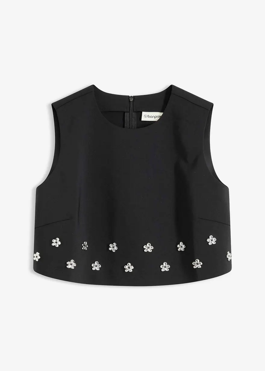 Kurzes Ärmelloses Top mit Ziersteinen