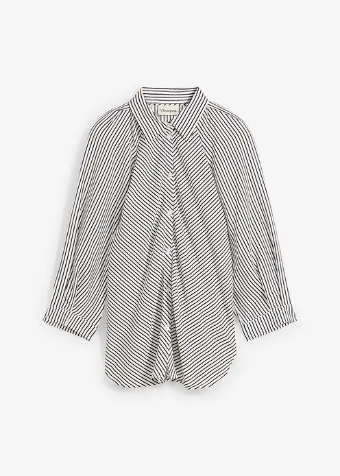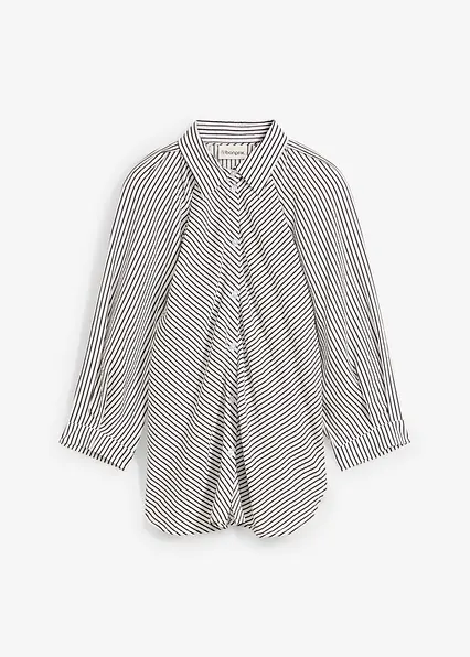 Streifenbluse mit Falten an den Schultern und Puffärmeln