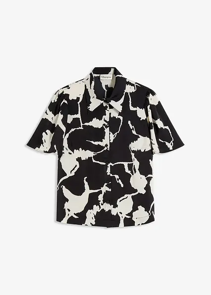 modisch bedruckte Bluse mit Halbarm aus fließendem Satin