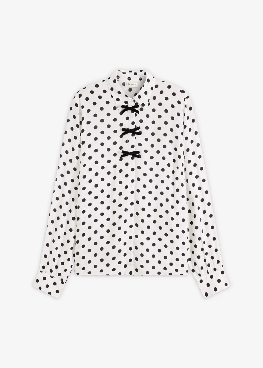 bedruckte Bluse aus fließender Viskose mit dekorativen Schleifen vorne