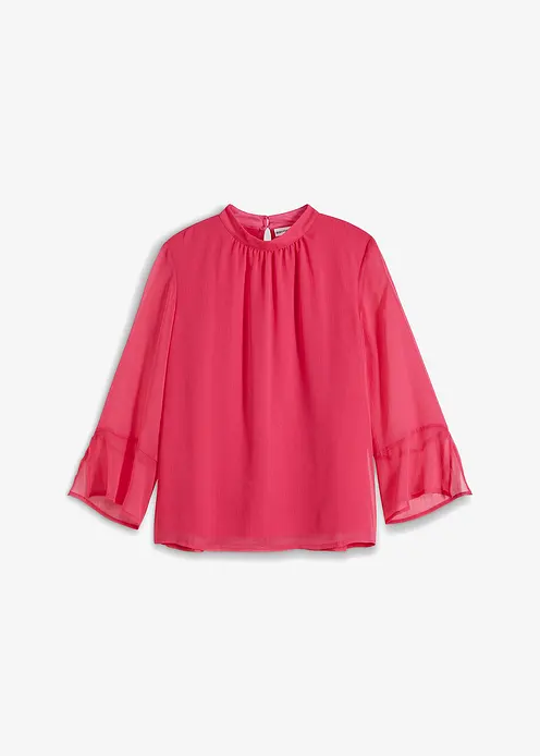 Feminine Bluse mit Stehkragen und Trompeten Ärmel