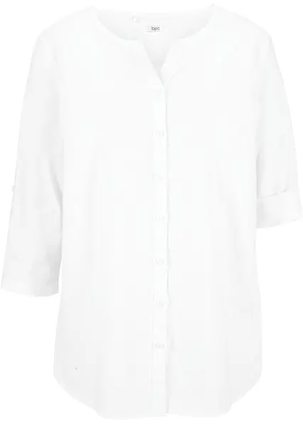 Bluse mit Leinen, 3/4 Arm in weiß von vorne - bonprix
