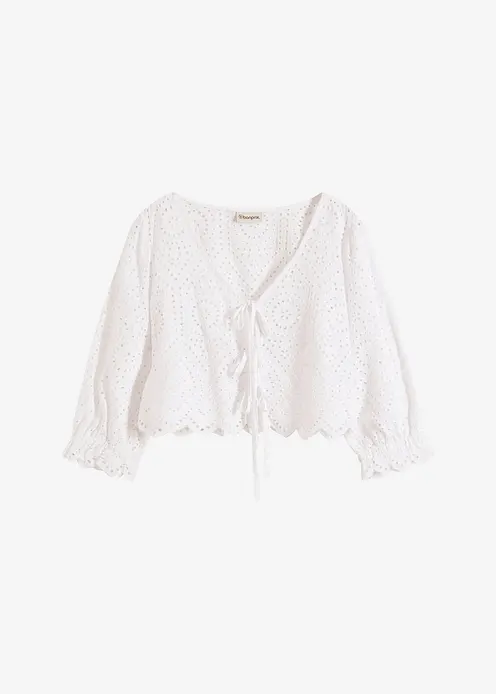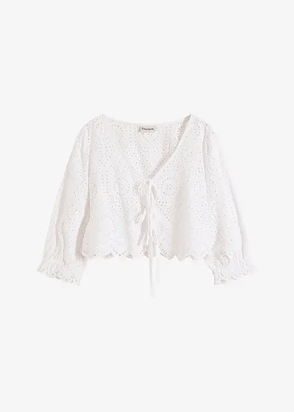 Lochstickerei-Bluse mit Schleifen zum Binden