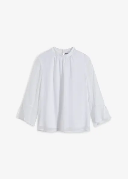 Feminine Bluse mit Stehkragen und Trompeten Ärmel