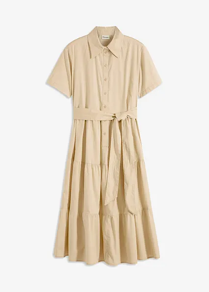 Hemdblusenkleid mit Bindeband, aufgesetzte Pattentaschen und Volantsrock