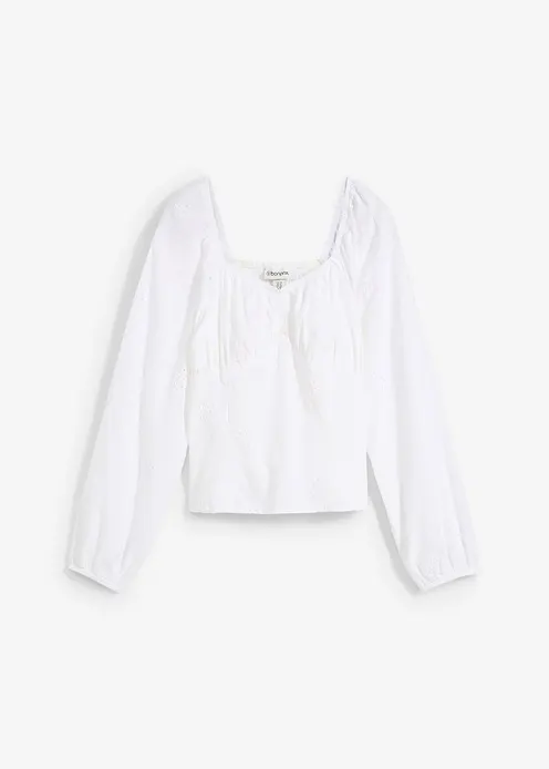 Blusenshirt mit Lochstickerei aus reiner Baumwolle