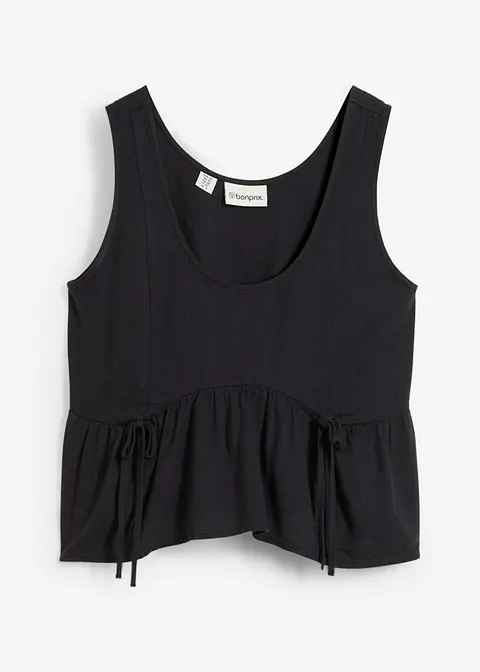 Modisches Blusentop mit Schleifen und Volants aus luftigem Leinen-Mix