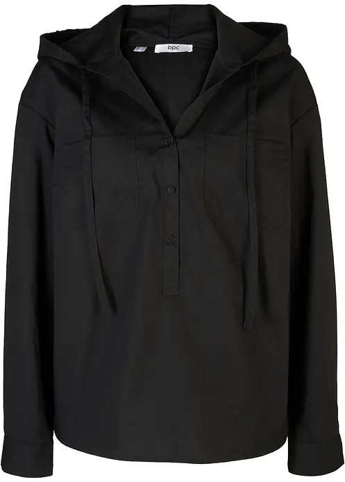 Raffinierte Bluse mit Kapuze aus reiner Bio-Baumwolle