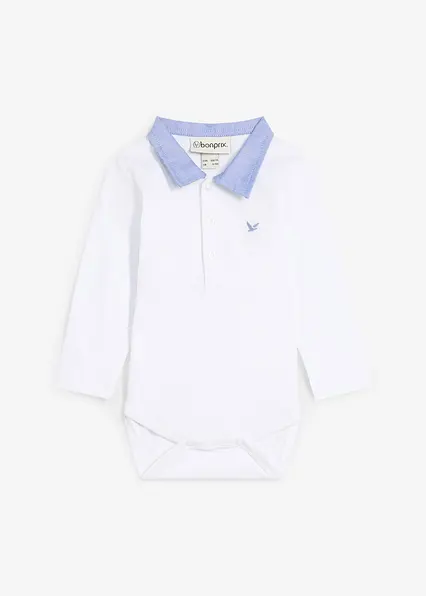 Baby Body aus Bio-Baumwolle in Weiß mit blauem Hemdkragen