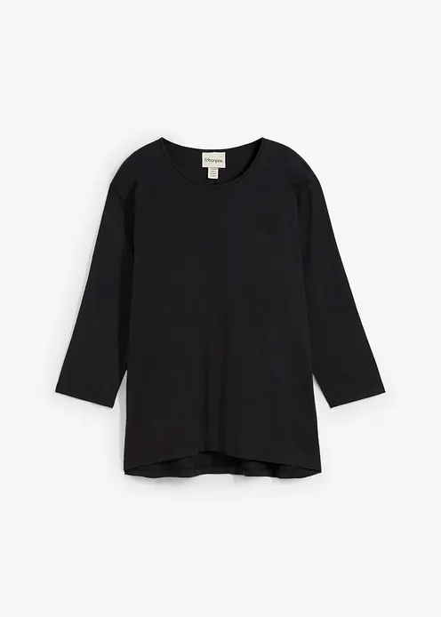 Boxy-Baumwollshirt mit asymmetrischem Saum, ¾ Arm