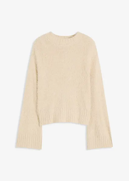 Boxy-Pullover aus flauschigem Federgarn in beige (im Anschnitt) - bonprix