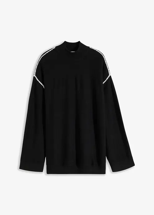 Boxy-Pullover mit Zierstich aus Viskose-Mix