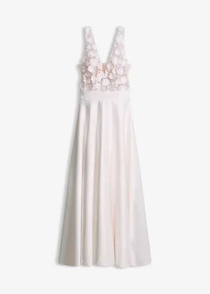 Brautkleid aus glänzendem Satin mit Blumen-Applikation