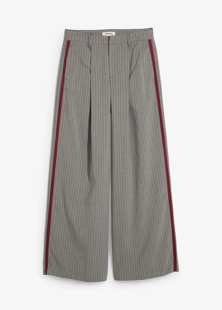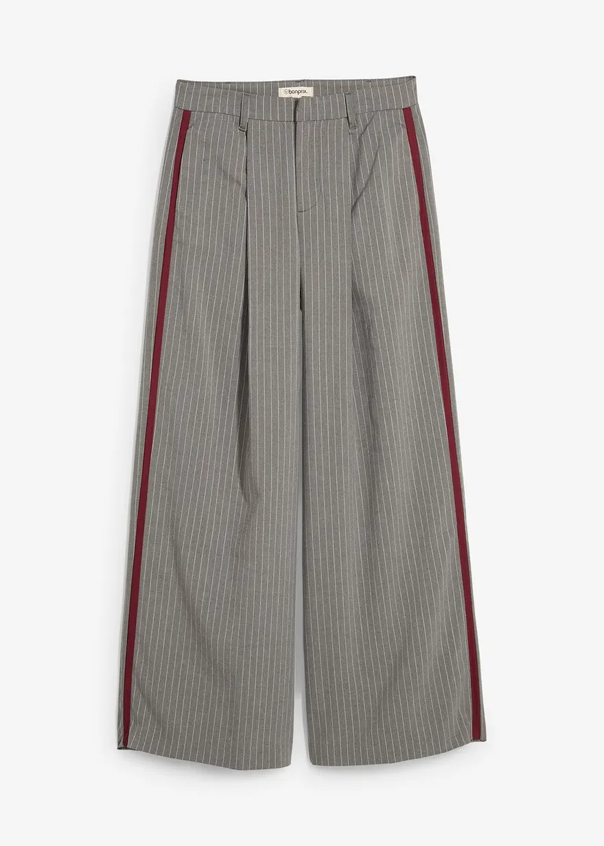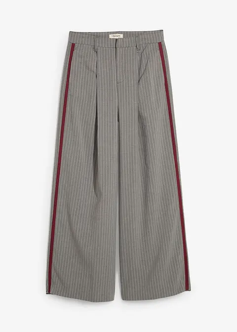 Weit geschnittene Bundfaltenhose mit Kontraststreifen