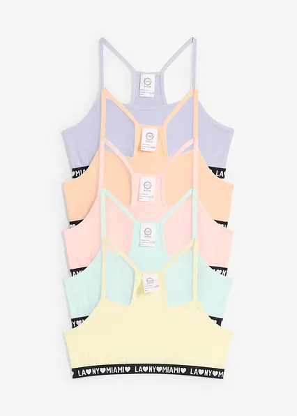 Schönes Mädchen Bustier mit Ringerrücken mit Bio-Baumwolle im 5er Pack.