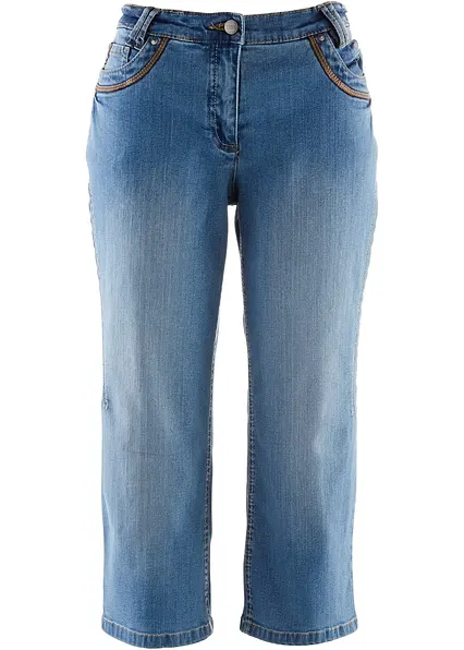 Modische 3/4-Jeans mit dekorativen Details aus Lederimitat