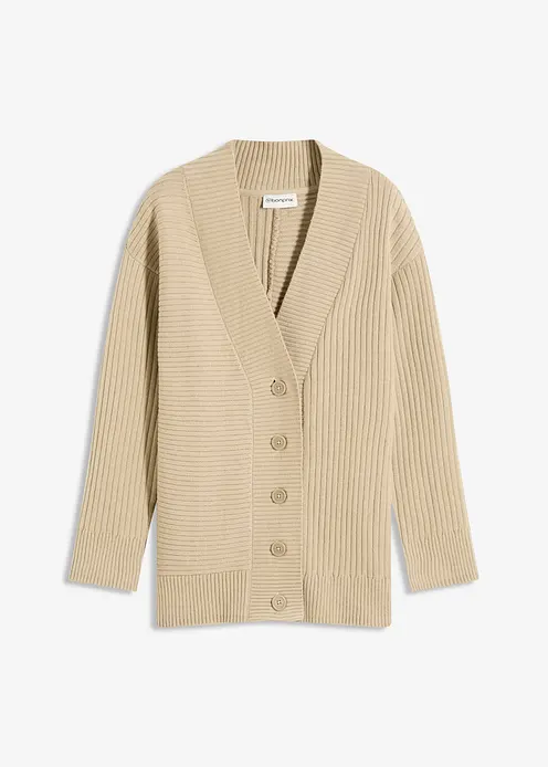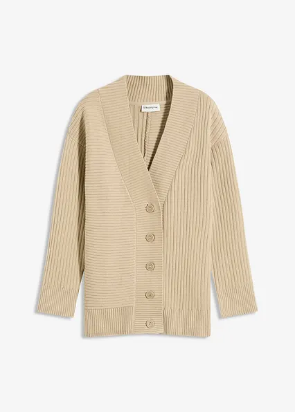 Cardigan mit Rippstrickmuster in beige von vorne - bonprix