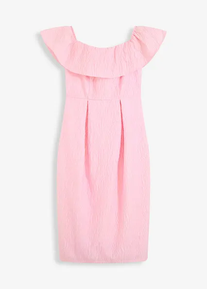 Modern und feminin: Carmen-Kleid in Midi-Länge aus glänzendem Jacquard