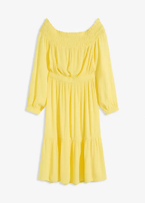 Langes Kleid mit elastischem Carmen-Ausschnitt und Gummizug in der Taille