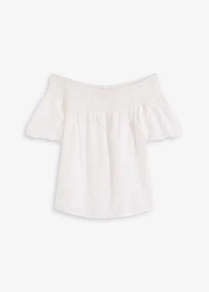 Bluse mit gesmokten weitem Ausschnitt und Puffärmeln