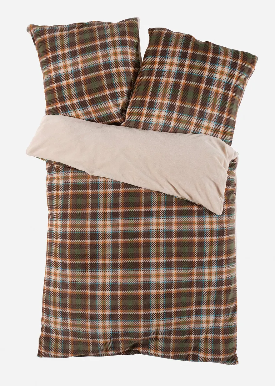 Flauschige Bettwäsche mit elegantem Karodesign und unifarbener Rückseite.