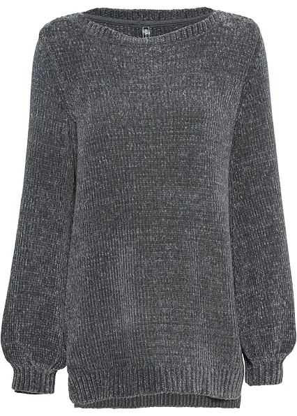 Samtiger Chenille-Pullover mit seitlichen Schlitzen
