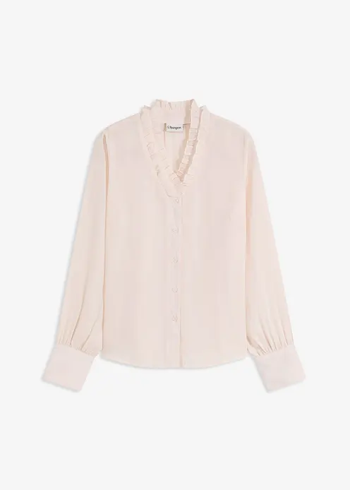 Chiffonbluse mit Rüschen in beige von vorne - bonprix