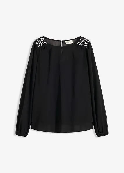 Modern und feminin: Bluse aus feinem Chiffon mit Strasssteinverzierung an den Schultern