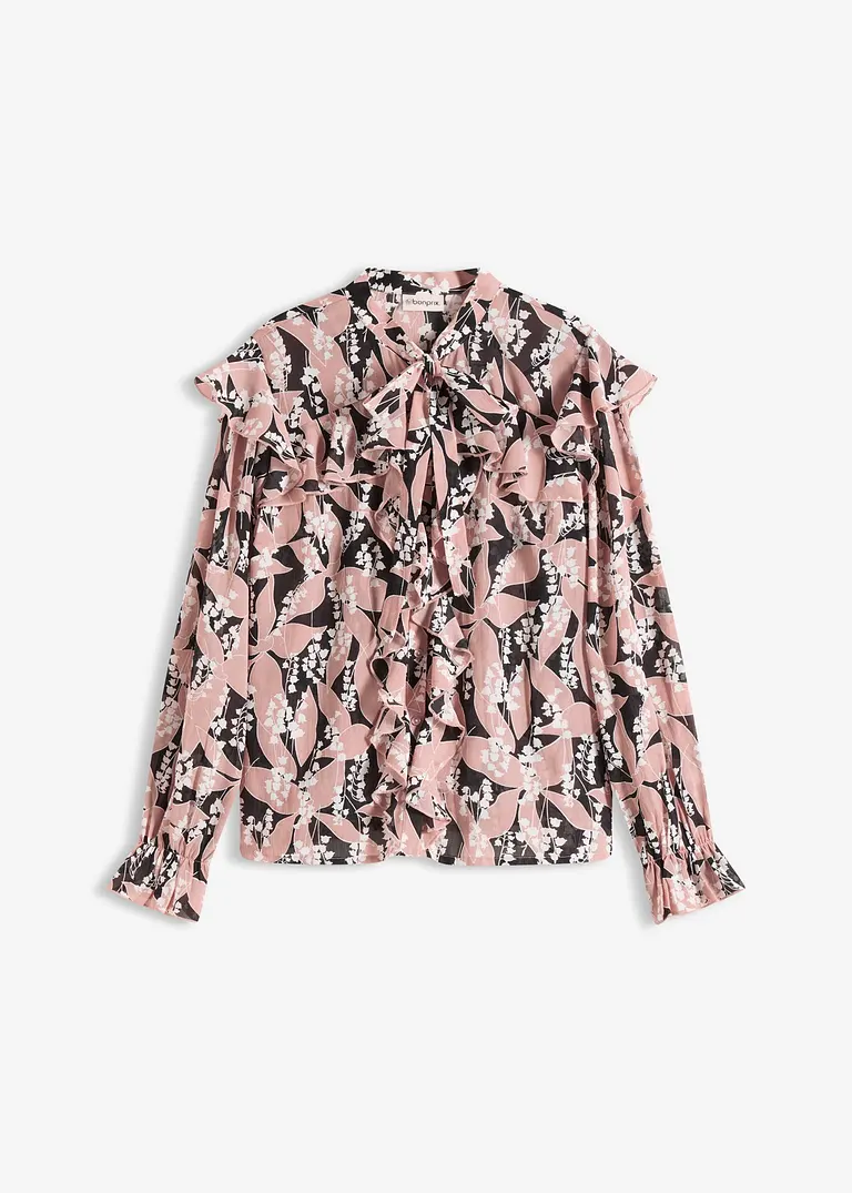 feminine Chiffonbluse mit Volants und floralem Print