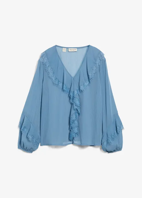 Fliessende Bluse mit feiner Spitze an den Volants