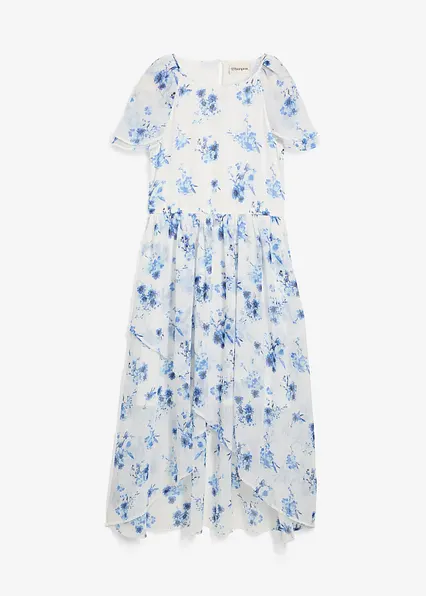Sommerliches Chiffonkleid für Mädchen: Rundhalsausschnitt, Raglanärmel mit Volants, asymmetrischer Saum, elastische Taille – ein luftig-leichter Hingucker mit Allover-Print!