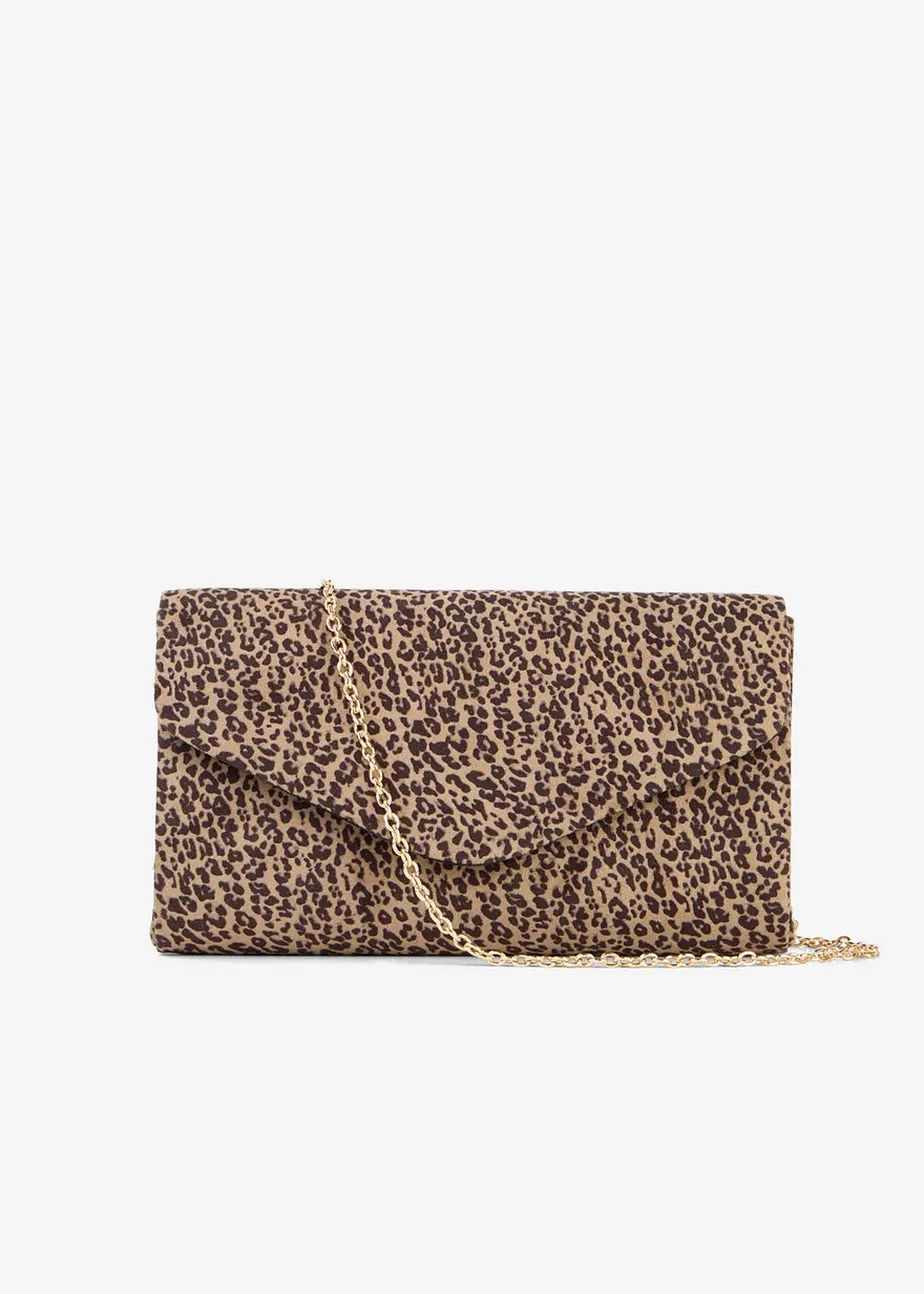 Clutch in Velourslederoptik mit Leoprint
