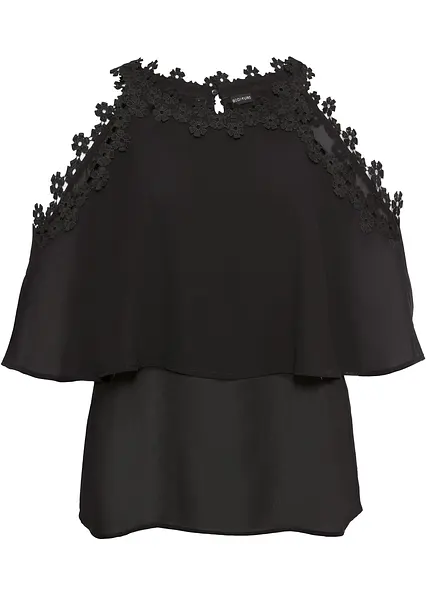 Originelle Cold-Shoulder-Bluse mit Cape-Effekt und Spitzendetails