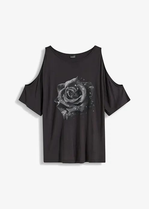 Cold-Shoulder-Shirt aus Viskose in schwarz von vorne - bonprix