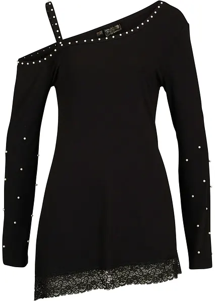 Cold-Shoulder-Shirt mit Spitze und Perlen