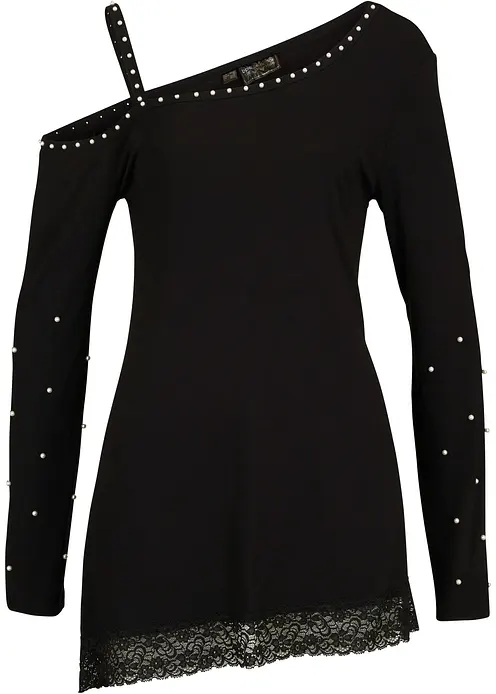 Festliches Cold-Shoulder-Shirt mit Spitze und Perlen.