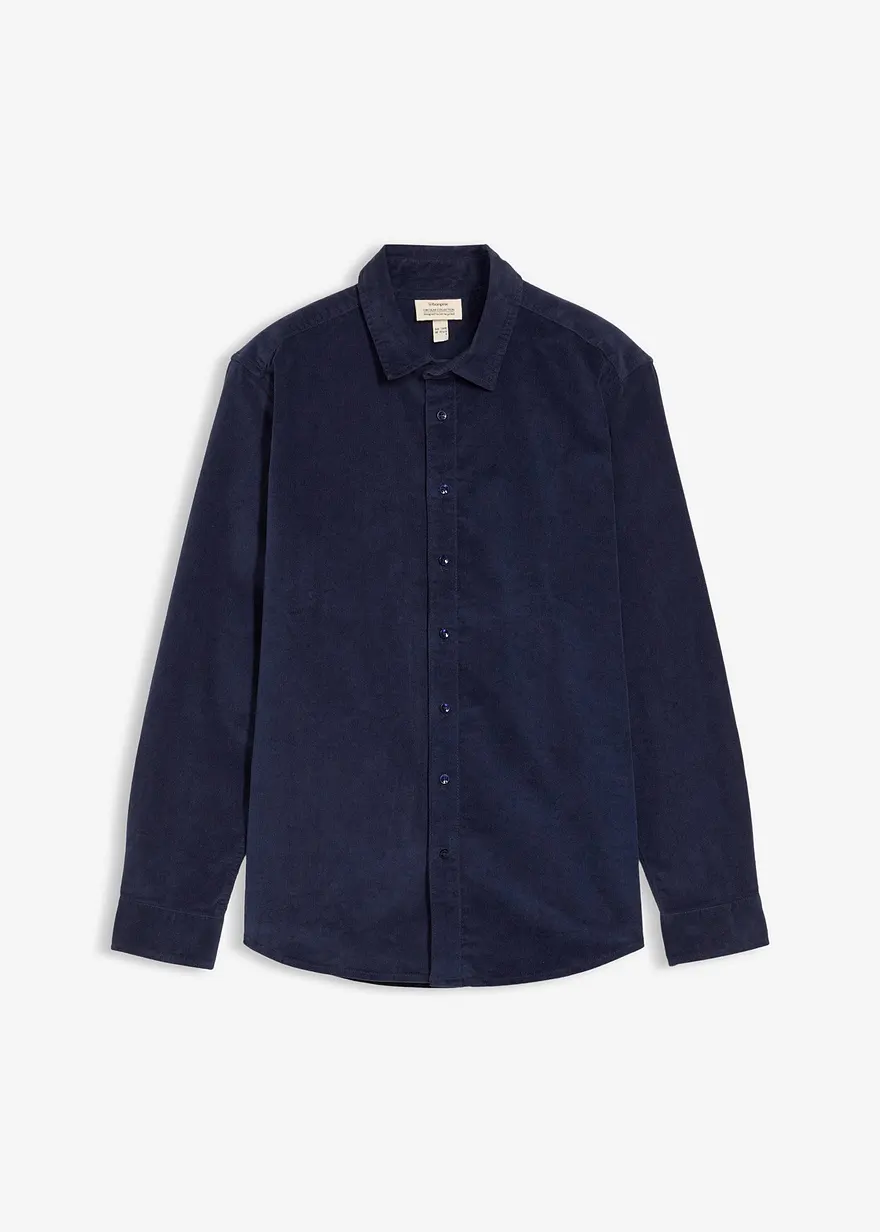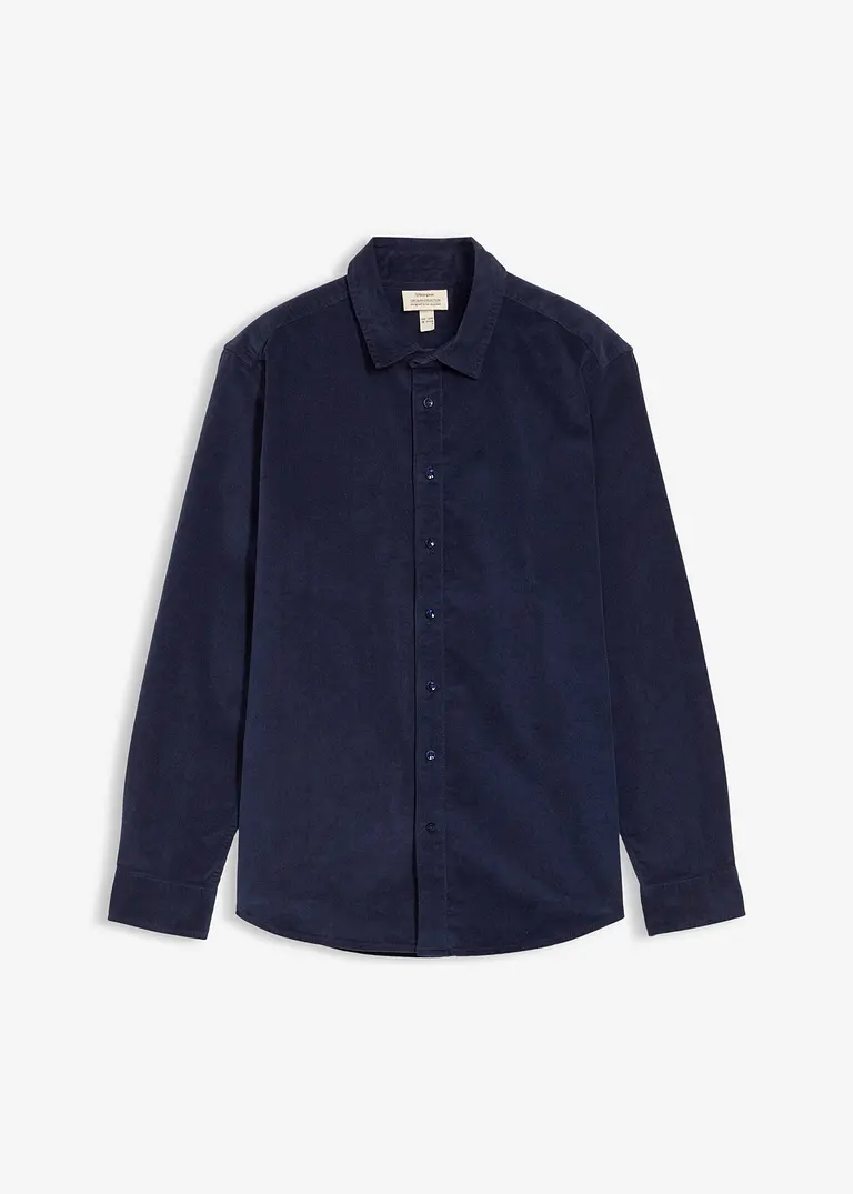 weiches Stretch-Cordhemd  aus recyclingfähiger Bio-Baumwolle in blau von vorne - bonprix