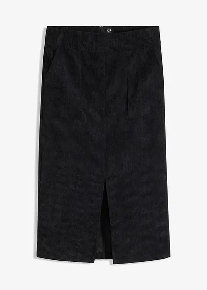 Cordrock mit Schlitz in schwarz von vorne - bonprix