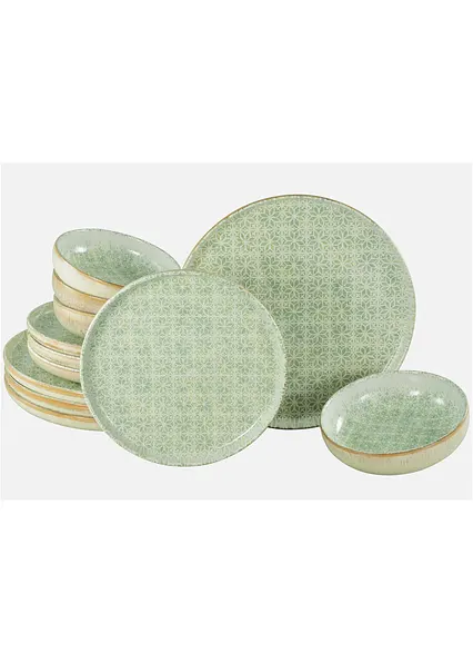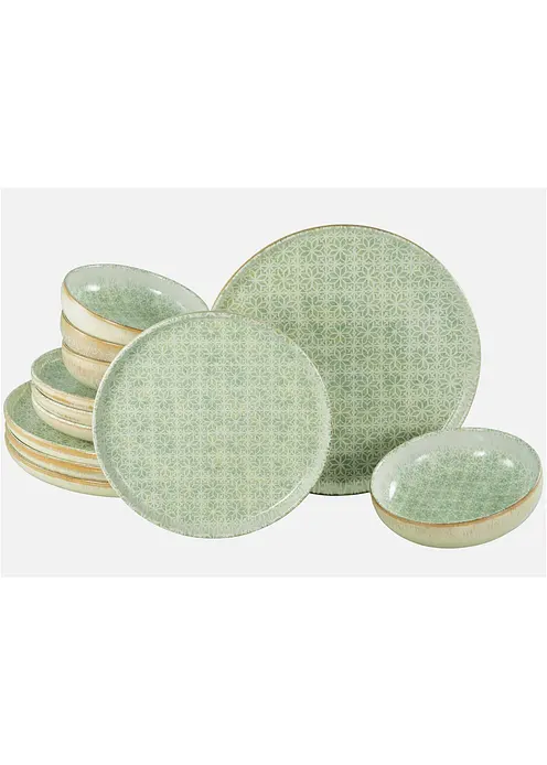 Hochwertiges Steinzeug trifft auf puristische Formgebung. Die Farbnuancen spiegeln die harmonischen Töne der Natur wider, inspiriert durch die sanften Farben von Grün, Terra, Stein und Sand. Die seidenmatte Oberfläche verleiht dem Geschirr eine markante Optik und unterstreicht ihre puristische, unkomplizierte Ausstrahlung – jedes Stück einzigartig. Bestehend aus 4 Speiseteller (Ø 28 cm), 4 Dessertteller (Ø 22 cm) und 4 Suppen-/Pastateller (Ø 22 cm).