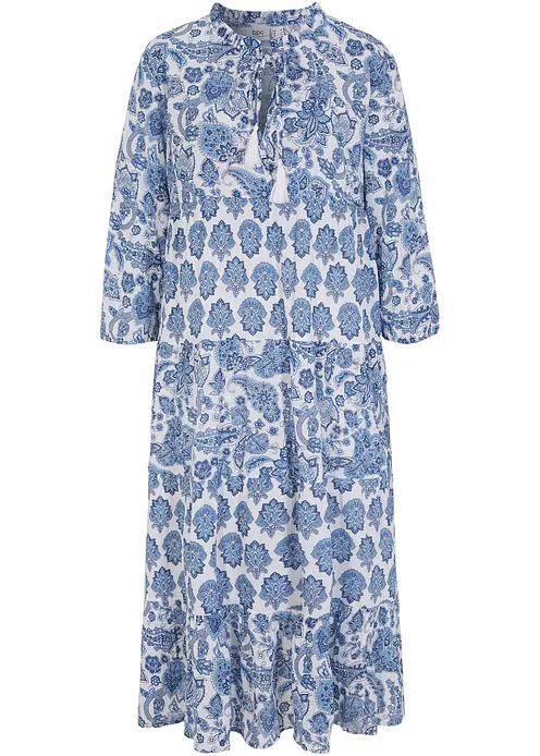 Crincle-Web-Baumwollmidikleid mit Taschen und 3/4- Arm