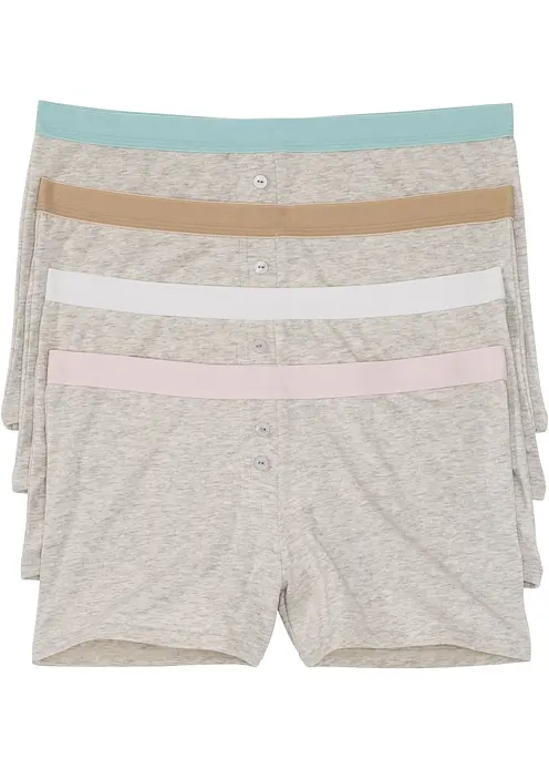 Diese hübsche Damen-Boxer im farblich sortierten Viererpack orientiert sich an der Variante für Herren. Unterhalb des elastischen Bundes setzt eine von farbigen Nähten umrahmte Fake-Knopfleiste an. Ein weiterer Blickfang ist der kontrastfarbene Bund.Neben ihrer besonderen Optik überzeugt die Damen-Boxer aus der bpc Kollektion mit einer körpernahen Passform und viel Tragekomfort dank des angenehmen Materials. Der Zwickel besteht aus Baumwolle.