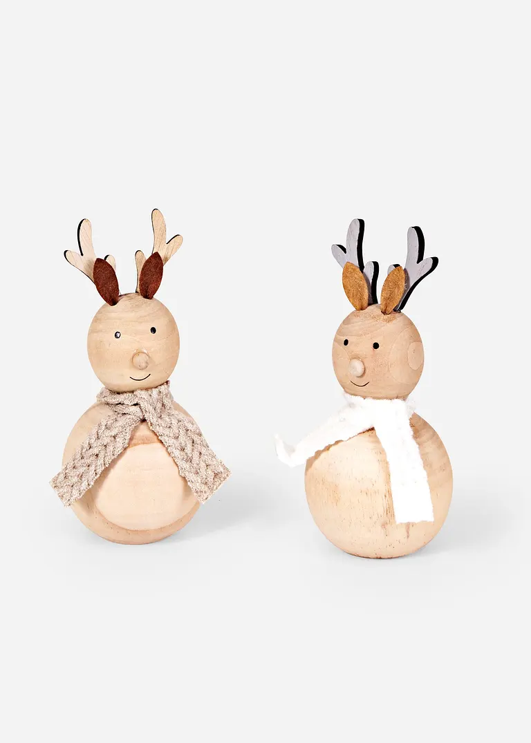 Die charmanten Holzfiguren in Form von Elchen bringen einen fröhlichen Akzent in die Weihnachtsdekoration. Mit ihren liebevoll gestalteten Details, wie den süßen Geweihen und den warmen Schals, strahlen sie eine einladende und festliche Atmosphäre aus. Die natürliche Holzoberfläche sorgt für einen rustikalen Look, der wunderbar mit anderen Deko-Elementen harmoniert. Diese Rentiere eignen sich perfekt als Tischdekoration, auf Regalen oder als Teil eines festlichen Arrangements. Sie sind nicht nur eine schöne Ergänzung für die eigene Weihnachtsdeko, sondern auch ein ideales Geschenk, um Freude und Gemütlichkeit zu verbreiten. Ein echter Hingucker, der in der Adventszeit für gute Laune sorgt.
