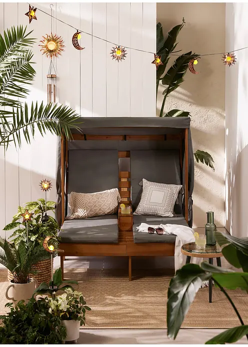 Doppel Gartenliege mit Vorhang in grau von vorne - bonprix