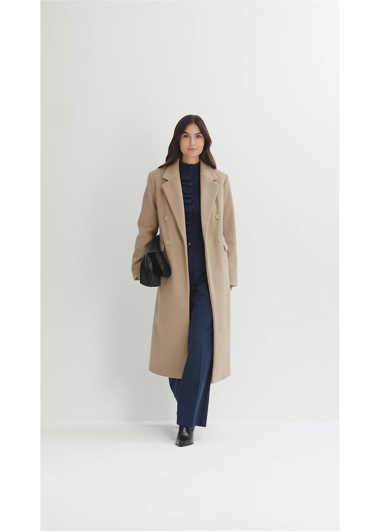 Doppelreihiger Mantel in Wolloptik in beige im Look von vorne (Totalaufnahme) - bonprix