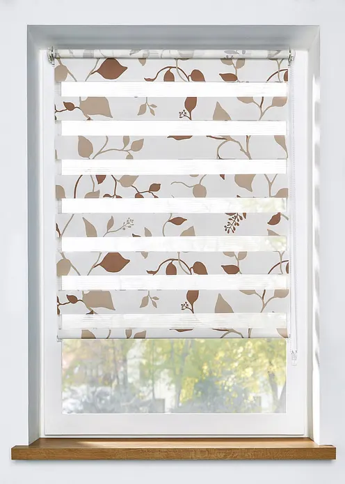 Toller Druck und ansprechendes Design! Mit dem trendigen Doppelrollo kannst Du individuell die Lichtverhältnisse in Deinen Räumen regulieren. Der Stoff ist abwechselnd in transparenten und blickdichten Segmenten unterteilt und verläuft doppelt gegeneinander. Durch diese Technik lassen sich vielfältige Licheinwirkungen über den rechts positionierten Kettenzug steuern: von Durchsicht zu leichter Transparenz bis hin zu Sicht-und Lichtschutz. Es ist stufenlos verstellbar.