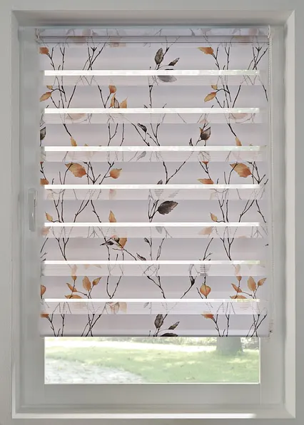 Doppelrollo mit Blätter Druck und passenden Klemmträgern