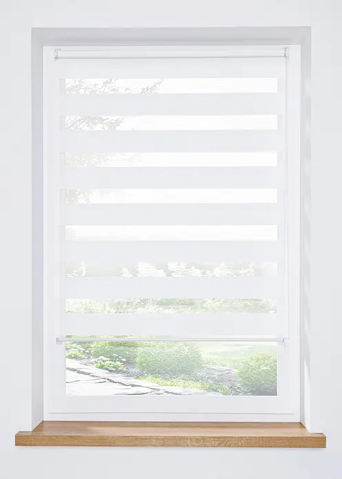 Dieses zeitlose Doppelrollo mit hellen Streifen passt in jede Einrichtung. Durch die abwechselnden transparenten und blickdichten Segmente kannst Du den Lichteinfall je nach Bedarf individuell regulieren.